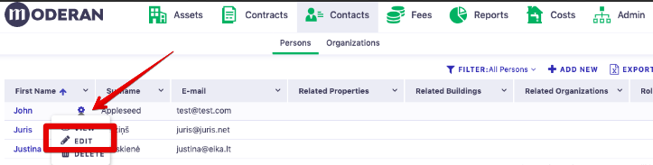 You can add contact Persons in Moderan and link them to Contracts, Organizations, Properties. This keeps all information about key people and responsibilities easily accessible, and in one location.