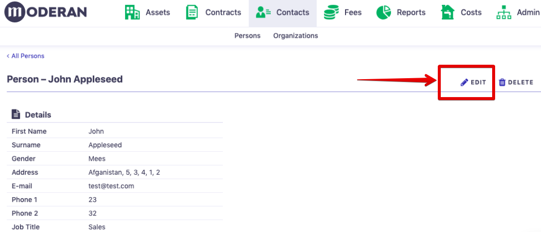 Once the Person is created, you can edit the information and associate relevant Contracts, Properties with this Person.