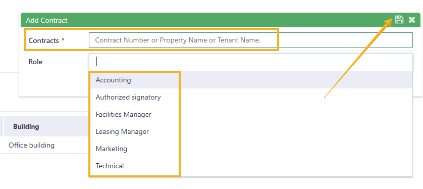 Hint: Admin users can create more custom Roles for Persons (Admin > Settings), e.g. Facility Manager, Leasing Manager, etc.Linking Persons to Rental Contracts or Properties