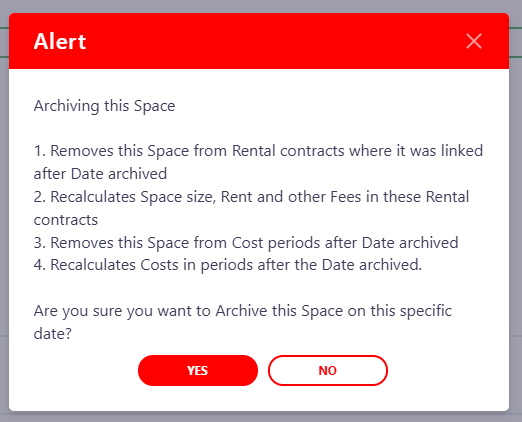 NB! If the space is linked to the Rental Contract, you will get the Warning message: