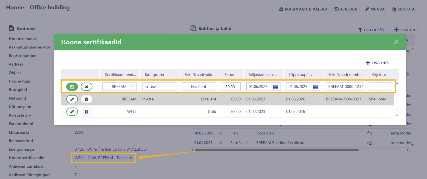 - Veenduge, et sertifikaat on salvestatud ja hoone kaardil nähtav.