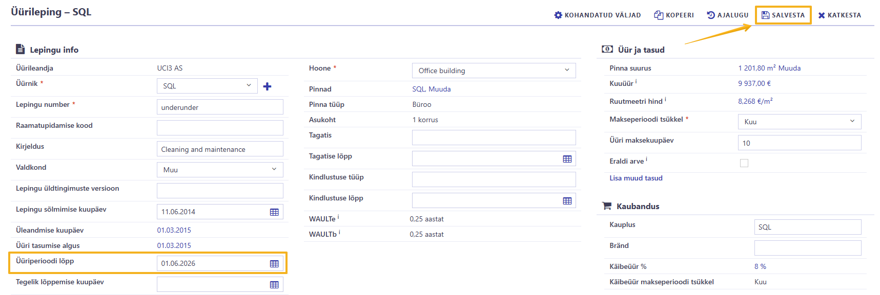 - Muutke üüriperioodi lõppkuupäev uueks kokkulepitud lõppkuupäevaks.