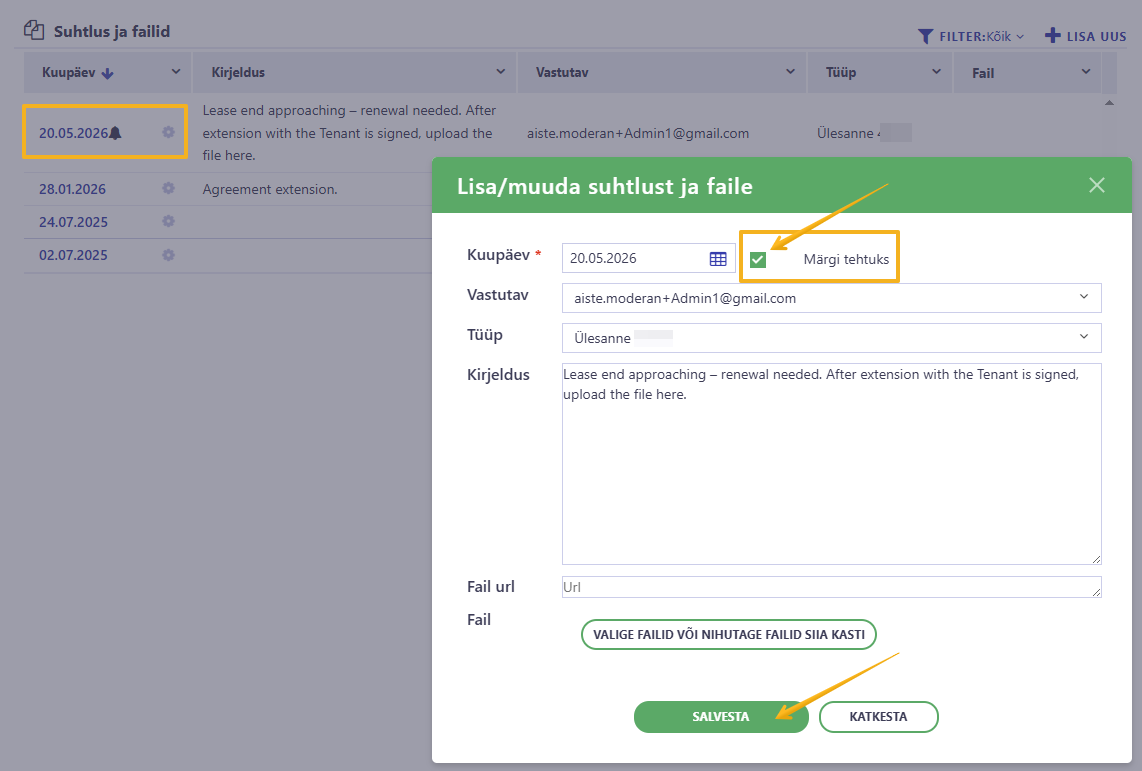 - Looge selge kirjeldusega ülesanne, näiteks: Üürilepingu lõpp läheneb – uuendamine on vajalik. Vajadusel lisage lisamärkmeid või juhiseid.