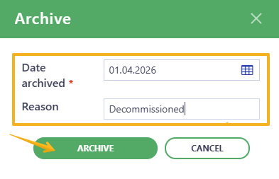 NB: Because archiving is irreversible, make sure the date and reason are correct before confirming.
