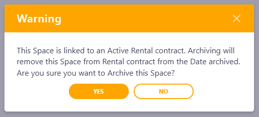 NB! If the space is linked to the Rental Contract, you will get the Warning message: